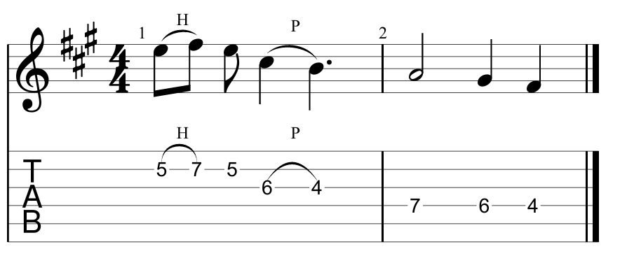 A simple but effective phrase that sits in position 2 around the 4th fret.